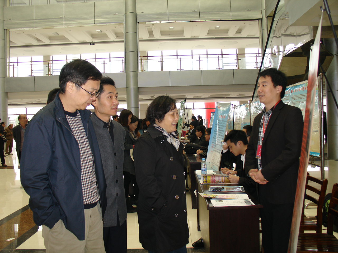 省教育厅大学生就业办公室主任张爱萍、副主任舒正鸣在学院副院长章志伟的陪同下,亲临招聘现场了解今年大学生就业趋势。