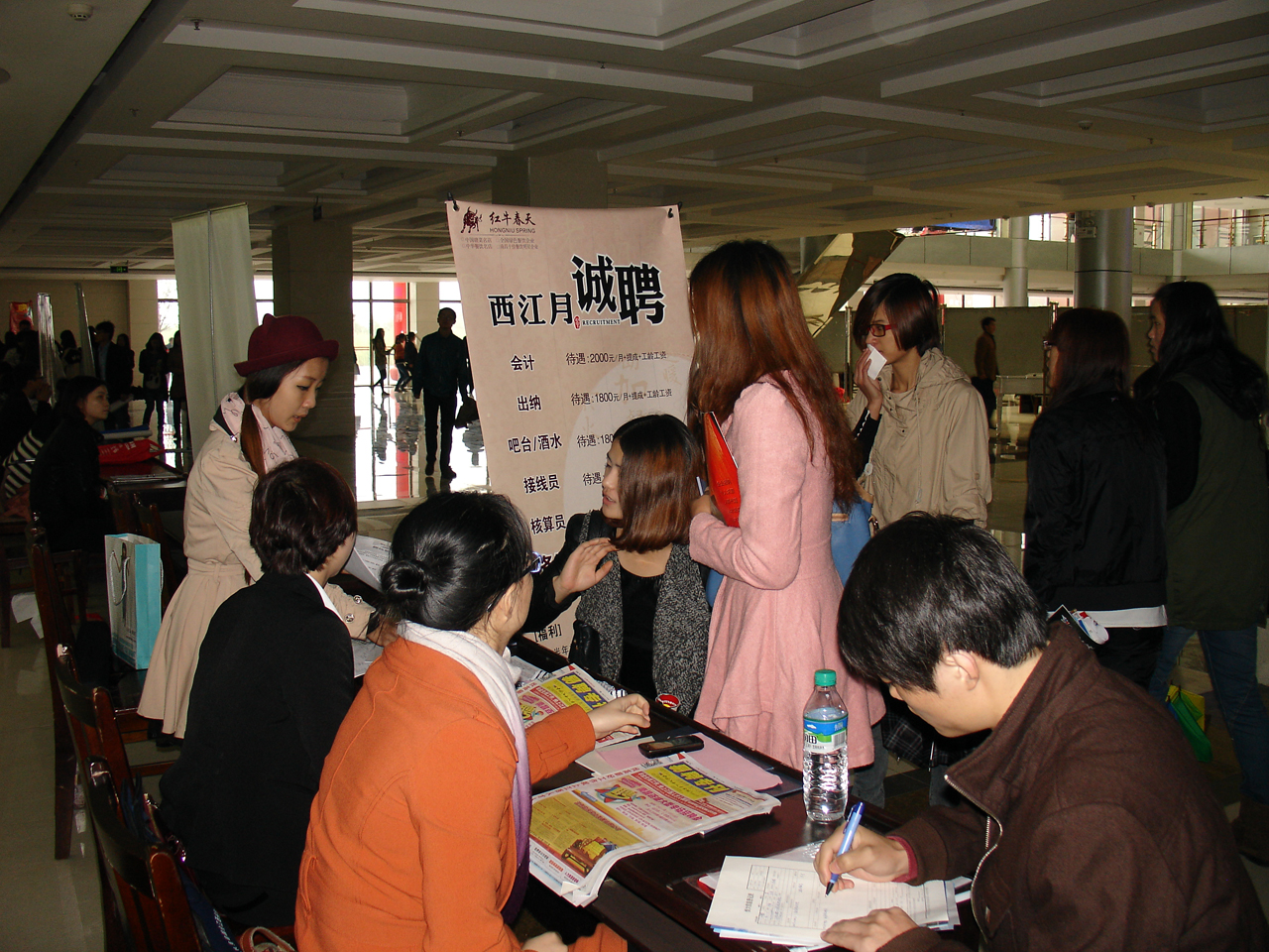 就业在南昌职业学院是“一把手”工程,其创导的就业理念是“先就业、后事业、敢创业”。基于此,该院今年推出以下措施,确保应届毕业生就业率达到86%,力争90%,专业对口率达到50%以上:一、层层签订签订毕业生就业工作目标责任书;二、将实习融入就业推荐之中,使社会实践、实习和就业形成三位一体;三、在毕业生中开展各种就业意向调查,全面把握毕业生的就业意向;四、采取各种措施,引导毕业生树立正确的就业观;五、通过实践案例,宣讲如何在应聘中更多的毕业生实现体面就业;六、在法律、政策、教育、资金、舆论等方面为毕业生创业予以支持。参加本届招聘大会的厂商多是长期合作单位,南昌职业学院毕业生优良的综合素质和扎实的工作技能不仅为这些厂商创造了效率和效益,而且还壮大了人才库,各厂商纷纷在本届招聘大会上出台优惠政策以提高签约率,致使该院毕业生在本届招聘大会上成为了“抢手货”,近3000名应届毕业生与近200家各类型企业在大会现场以双向选择的方式进行沟通。