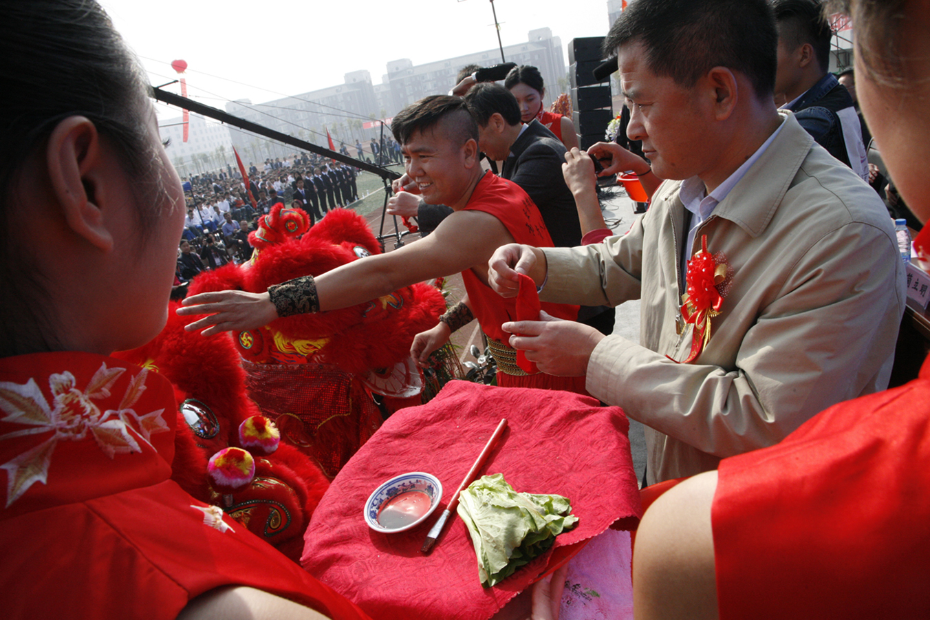 省委教育工委委员、省教育厅副厅长宋雷鸣为校庆之“舞狮”点睛