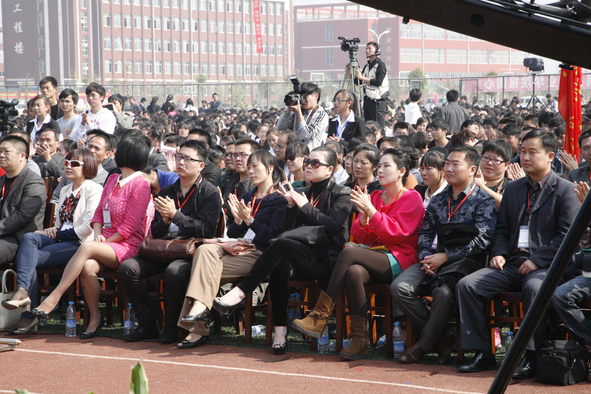 被学院授予首批杰出校友的95级公关文秘专业毕业生李贤平代表老校友在大会上发言