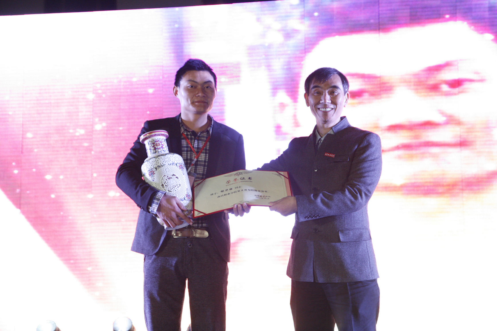 理事长章跃进为被南昌职业学院授予“见义勇为特殊荣誉奖”的郁华强校友授奖