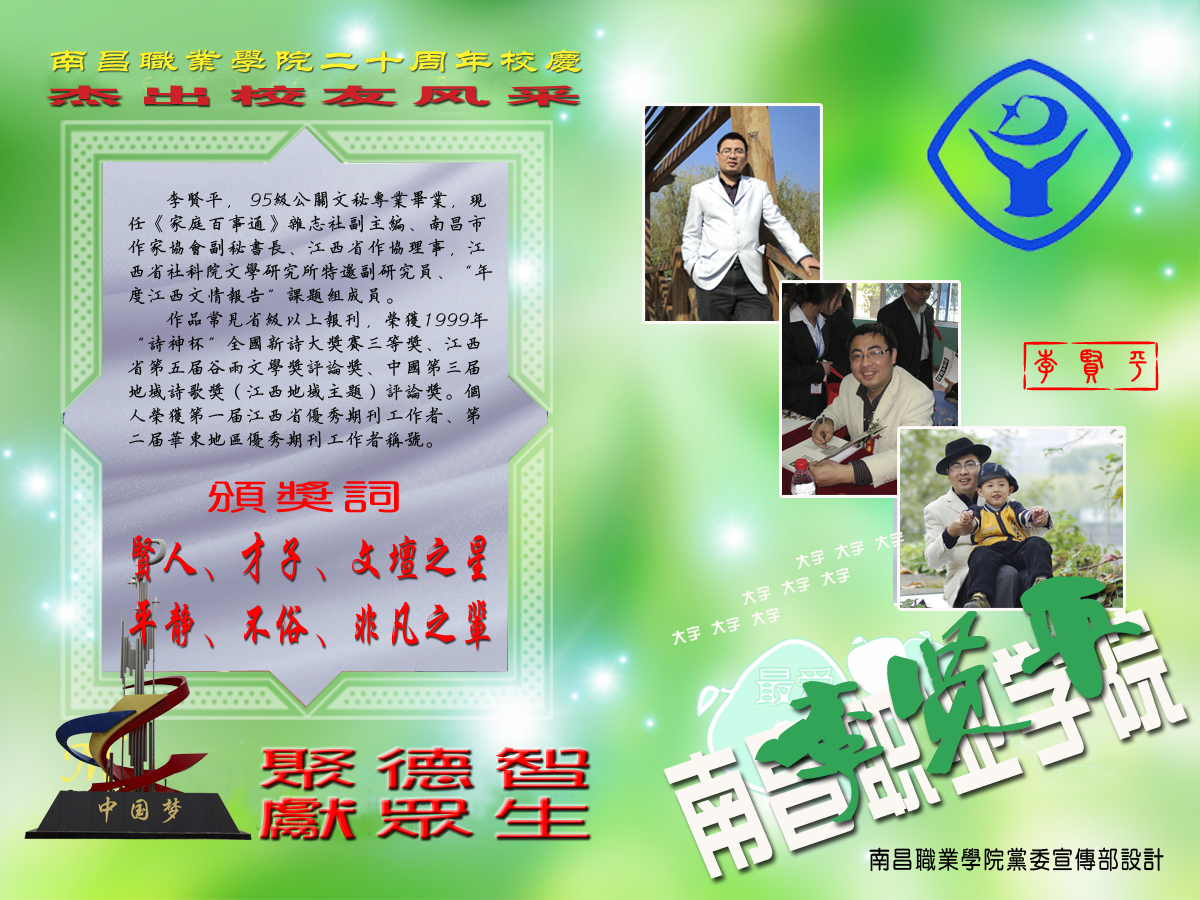 南昌市作协常务理事、副秘书长,江西省作协理事,《家庭百事通》杂志社副主编——李贤平(我院95级公关文秘专业毕业)