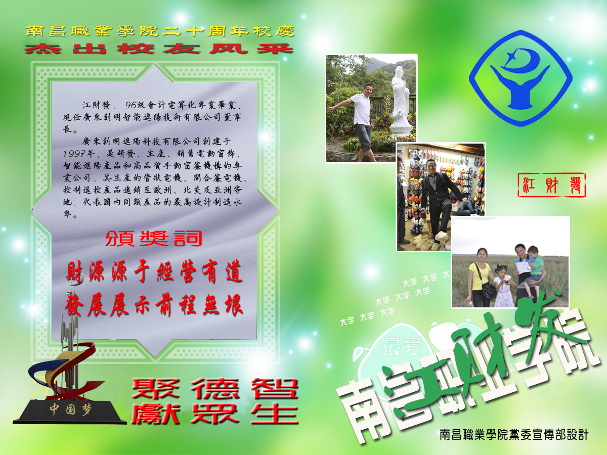 广东创明智能遮阳技术有限公司董事长——江财发(我院96级会电专业毕业)