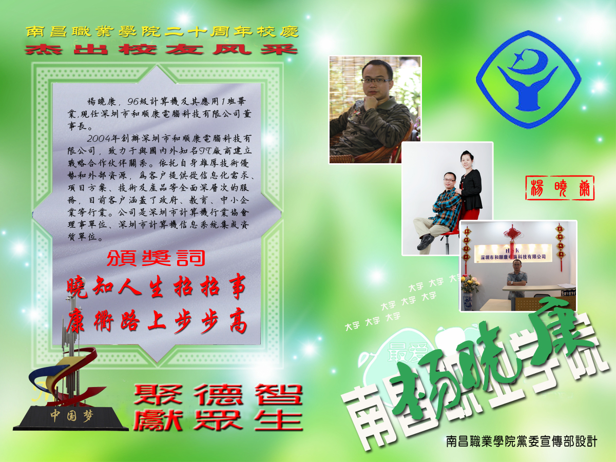 广东深圳市和顺康电脑科技有限公司董事长——杨晓康(我院96级计算机及其应用专业毕业)