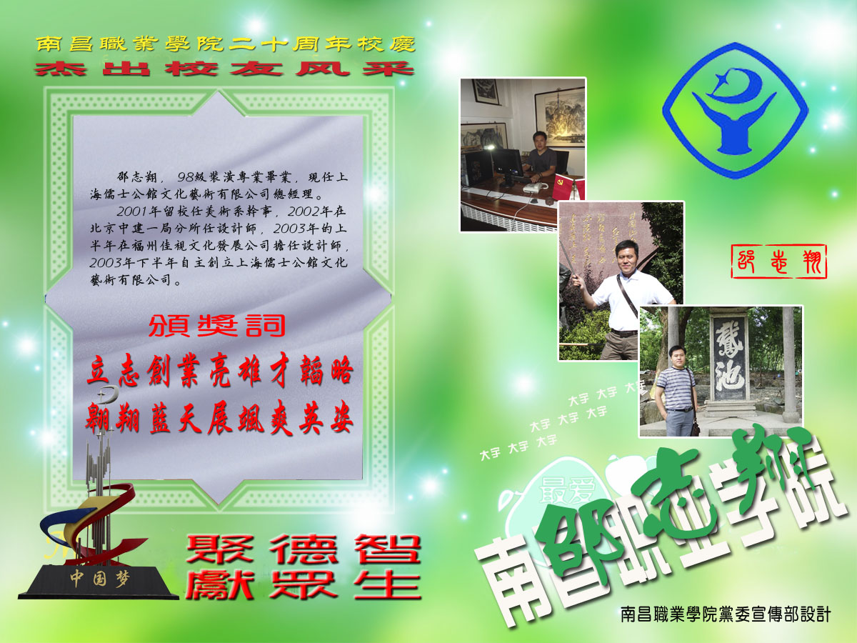 上海儒士投资管理有限公司、上海儒士公馆文化艺术有限公司等公司总经理——邵志翔(我院98级装潢专业毕业)
