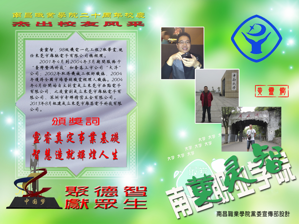 广东东莞市雄驰电子有限公司总经理——黄灵智(我院98级机电一体化专业毕业)