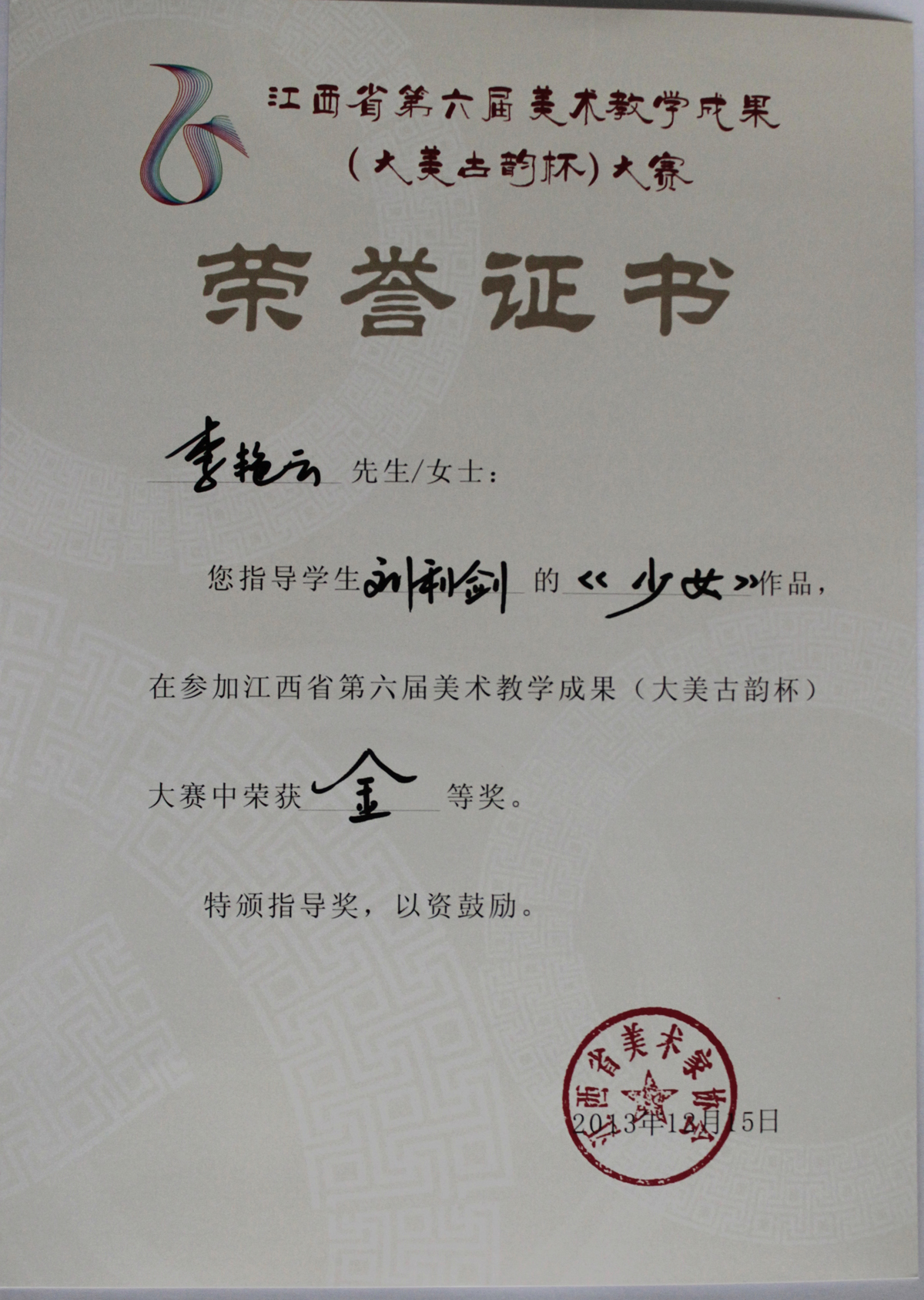 刘利剑的《少女》获得金奖,指导老师李艳云;