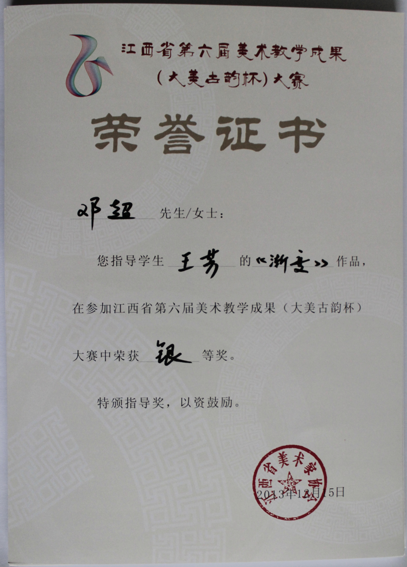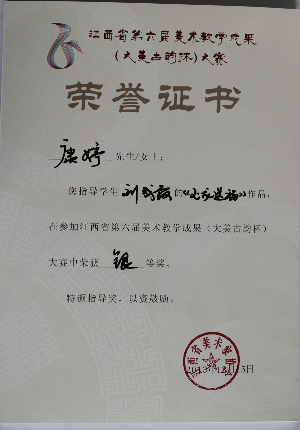 吕优的《中国龙---江西在行动》获得银奖,指导老师李艳云;