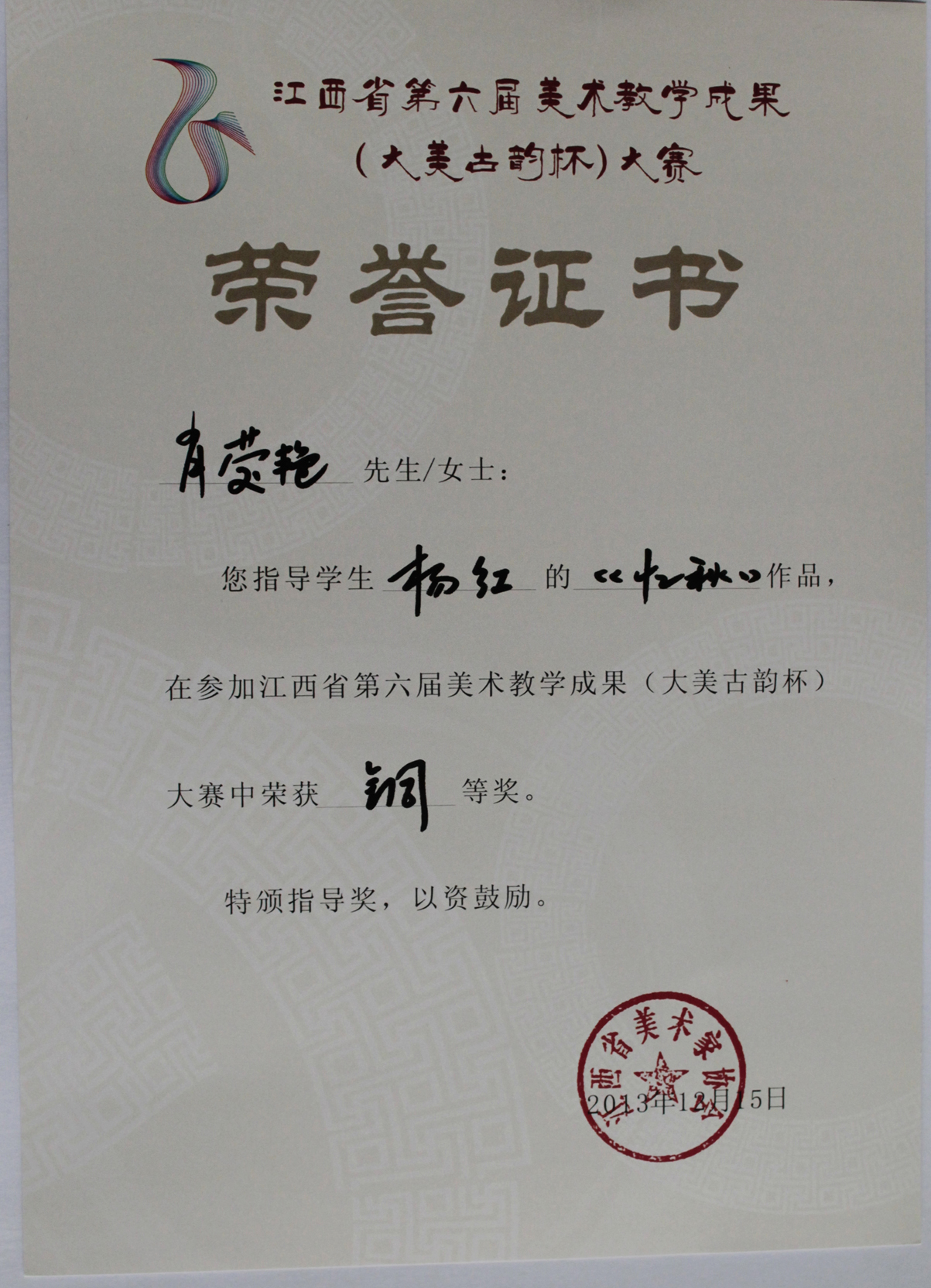 杨红的《忆秋》获得铜奖,指导老师肖莹艳;