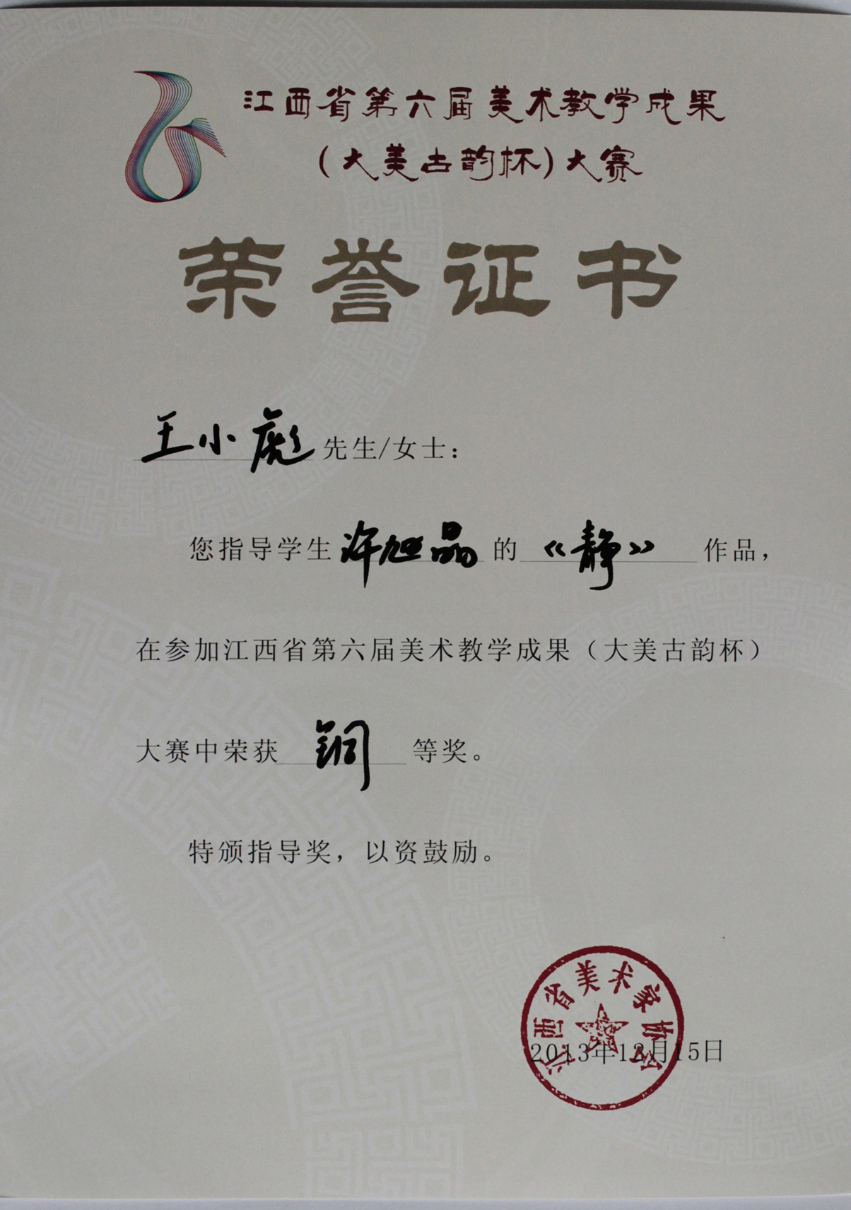 许旭晶的《静》获得铜奖,指导老师王小彪;