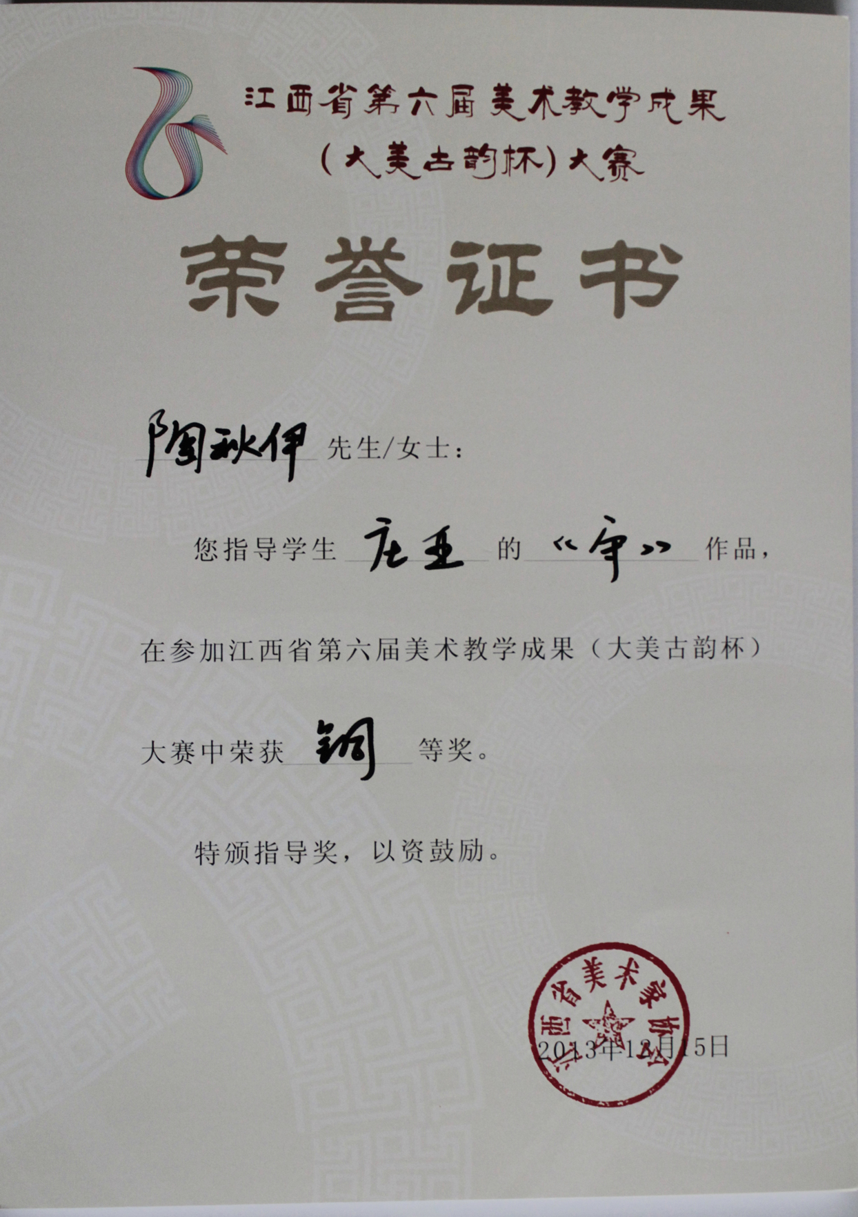 李文杰的《忆.jiang xi》获得铜奖,指导老师肖莹艳、康婷;