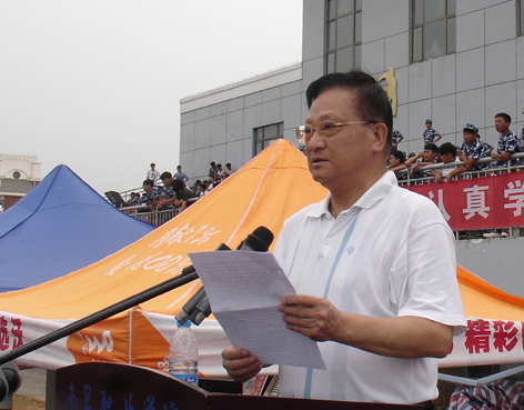 开学典礼主席台 督导专员、院党委书记杨寿庆检阅方阵