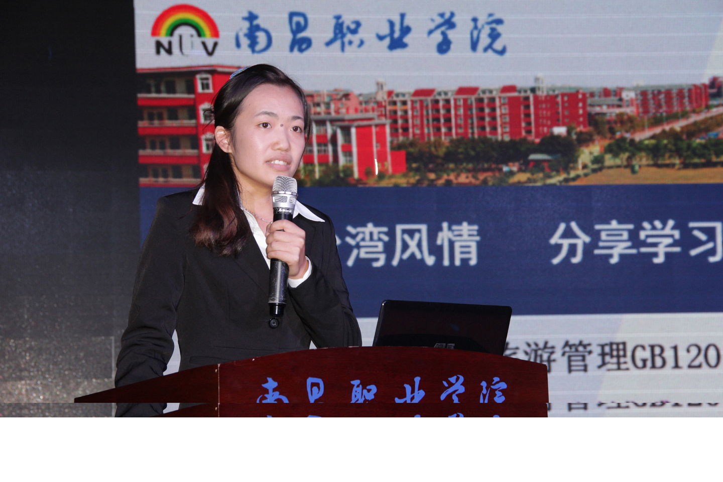 在欣赏了台湾佛光大学的校园风光宣传片后,经管系副主任梅艺华的致辞拉开了交流学习分享会的序幕,我院首批赴台湾佛光大学交流生代表、经管系旅游GB1201班刘博雅同学向大家作了激情分享,她通过演示PPT的形式与大家分享了在台湾的学习、生活和宝岛台湾的美丽风景,整个学习分享会气氛活跃,高潮迭起,同学们对刘博雅同学的游学经历不时投去了羡慕的眼光,掌声不断,与会的同学们纷纷表示一定要好好学习,争做优秀大学生。随后,特邀嘉宾台湾佛光大学研究发展处处长谢大宁教授作了精彩讲话,他系统地介绍了台湾风光和台湾佛光大学的办学历程以及交换生的相应政策,使同学们对台湾佛光大学有了更深的了解,并欢迎南昌职业学院学子赴台湾佛光大学交流学习。经管系副主任黄肃新从学习的角度鼓励同学们好好学习,珍惜机会,争取有更多的学生能拓展自身的素质和能力。