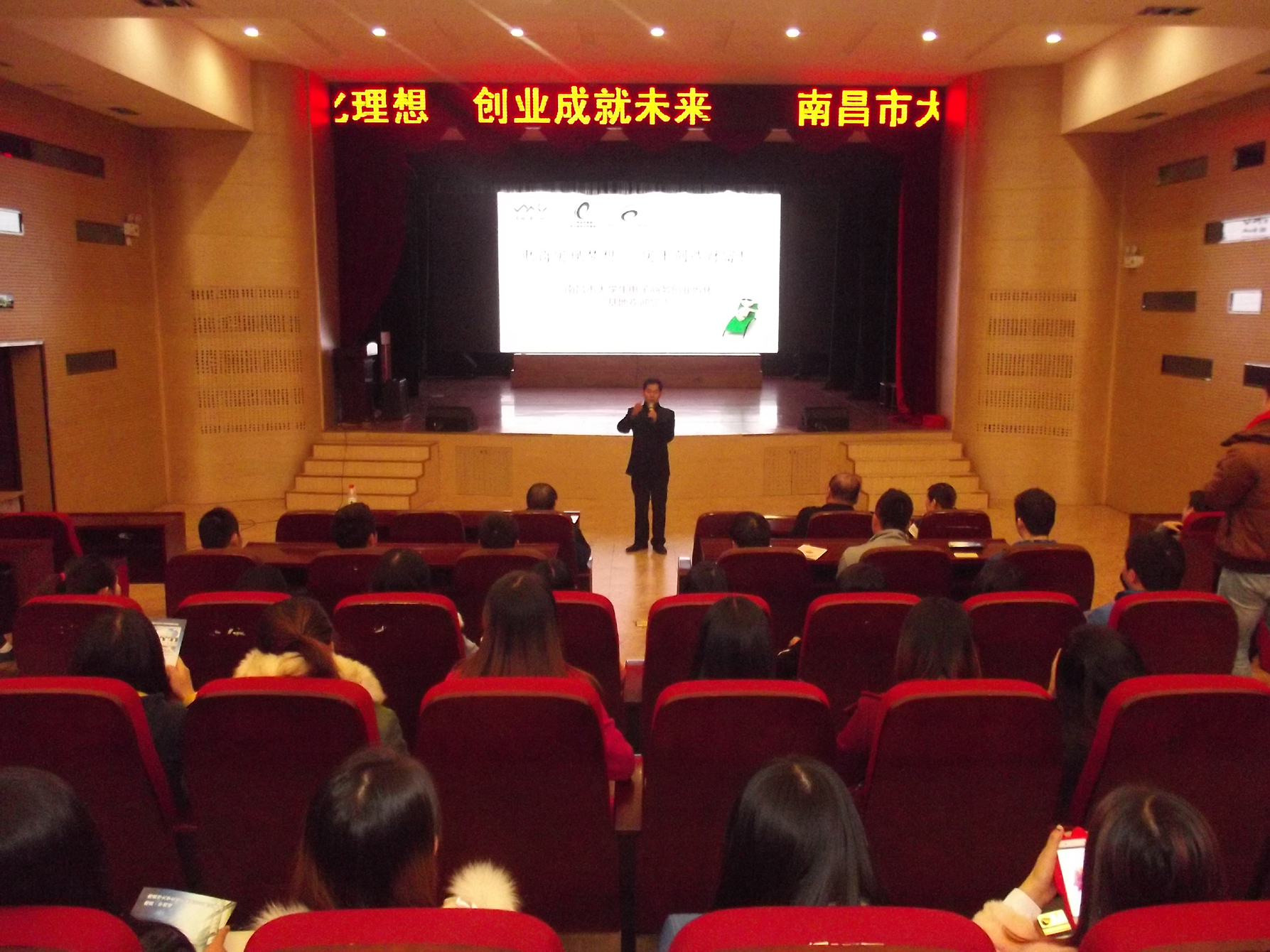 本网讯 就业办王太佑报道 12月5日,南昌华南城电子商务基地查经理等一行五人来我院举行创业宣讲会,全院近200多名毕业生及有创业意向的学生参加了这次创业宣讲会,学院章志伟副院长、信息技术系蔡厚新教授等领导出加了这次宣讲会。