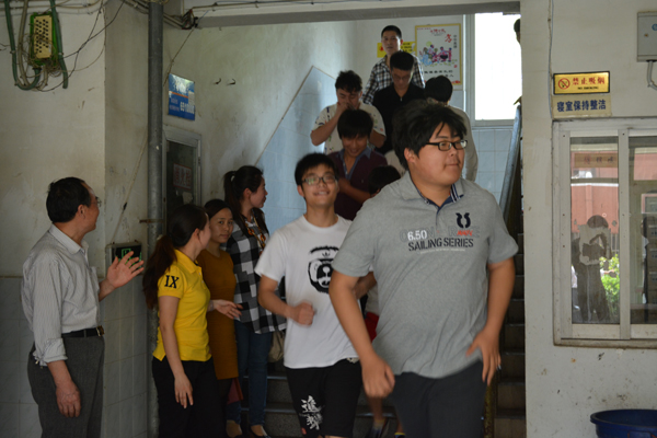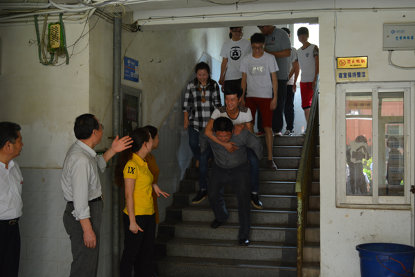 警报响起演练开始,参加演练的全体师生沉着冷静按照演练方案有序有组织地推进,同学们迅速撤离火灾现场,并且帮助“受伤”的同学一同撤离。逃生演练结束后,参加演练的师生又在篮球场集合,由保卫处老师讲解灭火器的分类以及使用方法,并要求同学进行操作实践。同学们一致表示,这是参加这样的火灾逃生演练,锻炼了自己沉着冷静面对突发事故的能力。