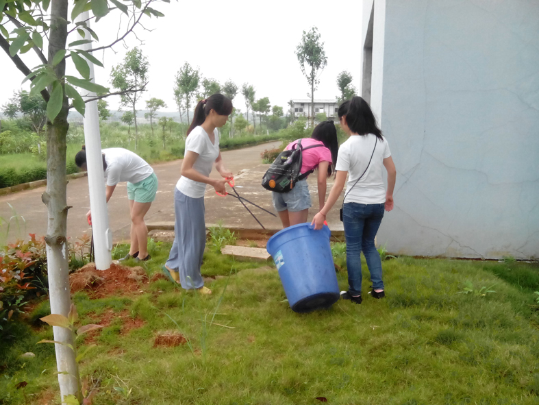 本网讯 体育系伍宽艳报道 5月28日上午,体育系副主任熊嘉带领班主任张惟泯以及社会体育GB1301班全体同学对体育馆和体育场周边进行了全面的大扫除,清除了瓜子壳、啤酒瓶等杂物,清理了绿化带的杂草和垃圾,体育馆以及周边呈现出一片新的面貌。