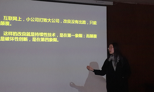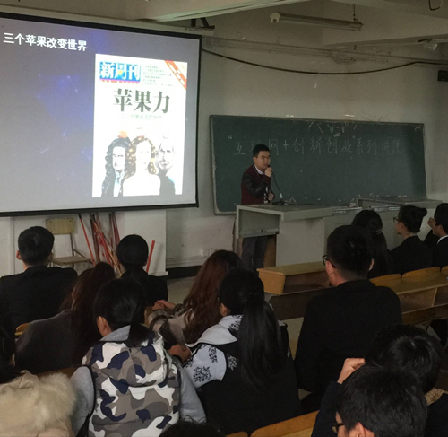 讲座开始前,经济管理系梅艺华副主任代表经济管理系师生向曹权、傅春、黄婧三位老师的到来表示热烈的欢迎。首先,曹权老师以IOS编程的入门介绍作为此次讲座的主题,从三个苹果事例引入,详细分析了苹果IOS与Android之间的区别,并详细阐述了云端、互联网、大数据等核心概念,向同学们介绍了互联网+的发展前景。紧接着,傅春老师以“智能可穿戴设备,融入生活”为主题进行讲座。他用生动有趣的语言,对可穿戴设备进行了详细的分析,从可穿戴设备的发展历程、应用领域、发展前景三个层次向大家诠释了可穿戴设备。最后,黄婧老师以“颠覆式创新——微信的出现与诺基亚的衰落”为讲座的切入点。以小米等优秀互联网企业及其思维为例,从商业模式、科技创新能力和洞察力这三个方面解析了以互联网为运营渠道的企业特质,并以颠覆式“创新微信的出现、诺基亚的衰落”为核心强调了创业过程中应具有突破式创新的思维模式。讲座现场三位老师与学生积极互动,气氛活跃。