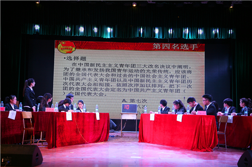 本网讯 大学生通讯社 朱文为 报道 为提高大学生思想政治理论水平,扎实推进以党建带团建,提高我院学生团员的政治意识、组织意识、模范意识,增强各级团组织凝聚力与战斗力,积极发挥基层团组织战斗堡垒作用,营造浓郁理论学习氛围,12月24日,由我院团委主办的以“学党团知识,赛自我风采”为主题的第三届党团知识竞赛总决赛在我院音乐演播厅隆重举行。莅临总决赛现场担任评委的领导有:学院党委副书记、副院长王小琴,学院副院长杨永东,学院党委组织部副部长胡荣华,学院党委宣传部副部长吕中华,学院学工处副处长张其光,学院团委副书记管鑫檑,学院院办副主任张会,学院党委组织部老师侯芳芳,学院团学指导老师荣宁,学院团学指导老师冯建军。