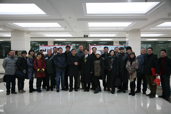 来宾合影(中间握手左方:章跃进学院理事长,中间握手右方:李玉文博士)