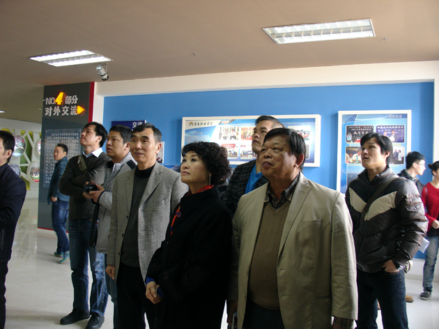 客人抵达我院安义校区后,先后参观了见证我院发展历史的校史馆、馆藏各类文献约88余万册、电子图书40多万册的图书馆、由国家教育部资助建设的数控实训基地和物流实训基地、在音乐舞蹈系实训基地欣赏了由我院学生艺术团表演的文艺节目,最后前往安义校区二期建设工地体会南昌职业学院未来的恢弘。南昌职业学院办学23年取得的成就深深地打动了客人,一路上客人们不停地将美丽的校园景色摄入相机带回台湾,并在图书馆、中国梦雕塑等地方合影留念。在二期建设工地,章跃进理事长向客人们介绍了南昌职业学院发展规划。