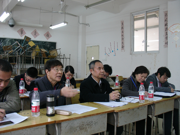 面对考官 从容对答 院长何小平(前排右三)为工程类授课老师的挑选把关