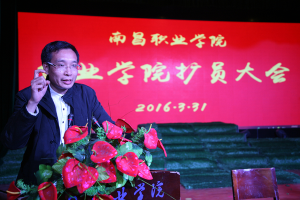 本网讯 就业办李金龙 报道 为了响应和落实国家关于“大众创业、万众创新”的号召,促进南昌职业学院人才培养,增强办学活力,南昌职业学院于3月31日在安义校区音乐演播大厅召开了“南昌职业学院创业学院扩员大会”。