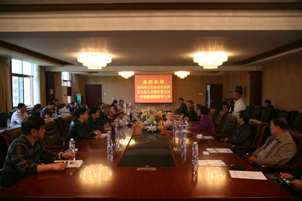 何小平院长首先代表学院对南昌市人大安义县代表团一行的到来表示热烈欢迎,并向代表团介绍了我院办学历史、发展历程、人才培养和建设发展的成果,并表示学院牢记高职院校的使命与职责,今后将继续整合自身办学优势,积极为安义县产业发展提供智力支持,努力使学院成为安义县经济建设的一支重要支撑力量,形成县校共生共长,政校企三方共赢的良好发展格局。王小琴副院长随后向代表团一行介绍了我院创业创新的成绩和 发展中遇到的问题。