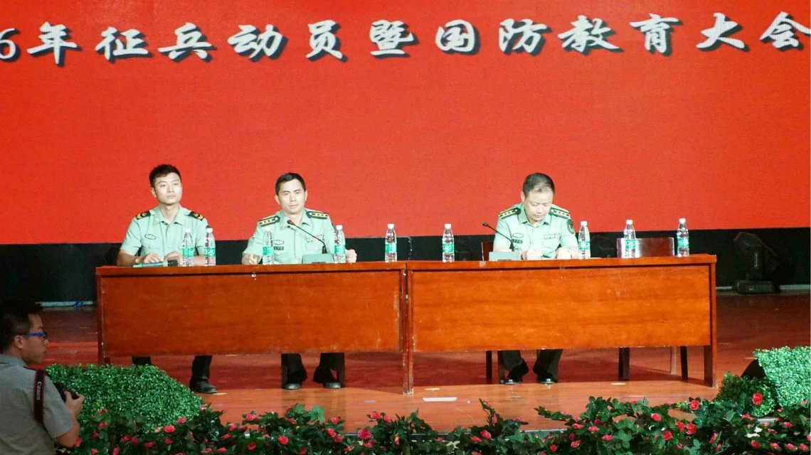 本网讯 经管系胡卜进 报道 5月31日晚上,我院在音乐演播厅召开2016年度征兵动员暨国防教育大会。
