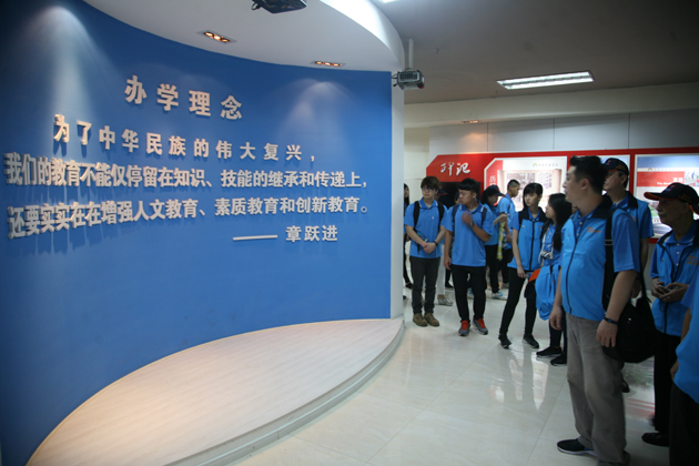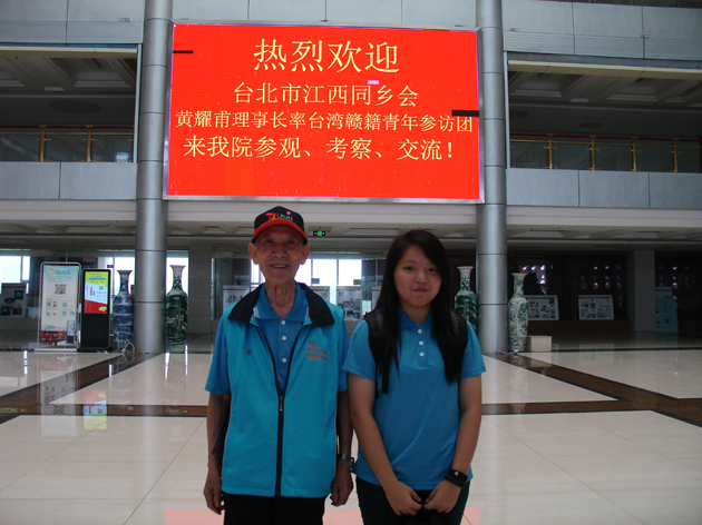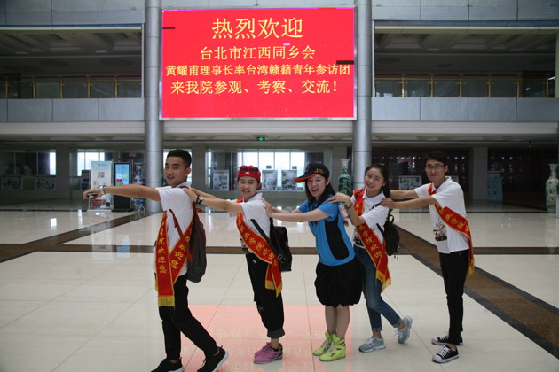 台湾台北市江西同乡会台湾赣籍青年参访团31位团员来自台湾的各个行业,是清一色的“江西老俵”,其中年轻人占80%以上,年龄最长者为90岁的邓晴文先生,最小者为来自台北松山工农中学16岁的姜品均同学。他们抵达南昌职业学院安义校区后,先后参观了学院图书馆、校史馆;考察了物流实训基地和机械工程系实训基地,创业学院副院长刘建林向客人介绍了创业学院的发展情况;在音乐舞蹈系的演播大厅,客人们与南昌职业学院的学生进行了联欢。在学院校史室,客人们通过图片、资料、图表,了解到南昌职业学院23年的发展史,纷纷称赞南昌职业学院把知识、技能、人文、素质和创新教育融为一体的办学理念,既与中华民族传统的教育理念一脉相承,又符合当代社会对技能型人才的要求,称赞南昌职业学院“聚德智 献众生”的校训具有深刻的内涵。在机械工程系的实训基地,客人们不时驻足,仔细察看科技含量极高的数控机床的运转情况和学生在实训时制作出来的各种精美工件,称赞南昌职业学院的学生具有很高的实际操作技能;在图书馆一楼大厅,两岸青年有的互叙衷肠,有的互留联系方式,有的摆出各种优美的pose,将靓丽的身姿收入镜头,场面令人感动,展现的是“两岸一家亲”的生动场景。两岸青年的联欢把这次台湾同胞的参观访问推向了高潮。联欢会开始前,南昌职业学院常务副院长肖玉梅和台湾台北市江西同乡会理事长黄耀甫先生分别致辞,他们述说对家乡的赞美,表达希望祖国早日统一的迫切愿望。南昌职业学院陈帅演唱的《我是中国人》,让两岸青年感到了作为中国人的自豪,台湾青年的合唱《欢乐年华》,展示了青年人的青春活力和积极向上的精神风貌。联欢会上高潮迭起,两岸青年以歌声和舞姿,赞美家乡的美丽,歌颂青春的壮丽,述说游子对故土的眷恋,表达两岸青年人对祖国统一的强烈愿望。联欢会结束前,南昌市台胞台属联谊会会长、南昌职业学院理事长章跃进讲话,他说两岸同胞同根共祖,希望两岸青少年共同努力,为实现祖国的统一作出贡献。