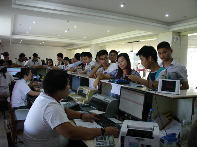 学费收缴的工作来不得半点马虎,特别是人多的情况下更要小心仔细。然而,财务处参加今年新生接待工作的全体职工在王云静副处长的带领下,既做到了无差错,又让学生和家长不断地为他们的工作态度和工作效率点赞。8月29日新生接待工作进入高峰, 收费大厅里人头攒动,这可忙坏了收费的财务人员,本是清凉的收费大厅里,忙于收费的财务人员却个个是细汗满头,他们聚精会神地查看资料、核对数据,耐心细致地给学生或家长交代注意事项、指出需要提交的证明。下面是一位来自安徽的学生与父母的对话,这段学生与家长对话,折射出了新生报到收费是怎样的一种工作状态—— 儿子问:“这里还蛮凉快的,怎么这些收费的老师好像头上还在出汗啊?”母亲回答:“那是他们工作相当紧张的原因,这是他们的工作性质决定的。你想想,在接待整个的过程中,数字不能错,态度不能差,动作不能慢、环节不能少,那不紧张才怪。”儿子又转过脸问父亲:“我学的是财会专业,那将来我的工作也要这么的紧张吗?哪我还吃得消?”父亲说:“这要看你是怎样的一个心态,有没有过硬的职业技能。心态好的人就有耐心,心态差的人就容易发脾气;有过硬的职业技能就不容易出差错,没有过硬的职业技能就容易出差错。”儿子想了想说:“那我在这里学财会不但要学好技能,还要培养自己良好的心态。”母亲摸着儿子的头说:“那是必须的。”
