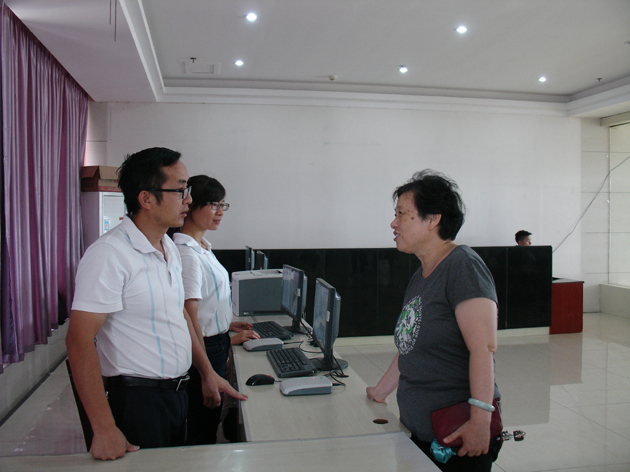 常务副院长肖玉梅在接待大厅看望教职员工 财务处的职工在有条不紊地工作