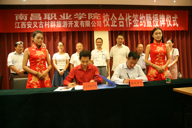 本网讯 党委宣传部黄彦斌 报道 8月31日,南昌职业学院与安义古村群旅游开发有限公司在安义古村举行了“校企合作”项目签约暨授牌仪式。